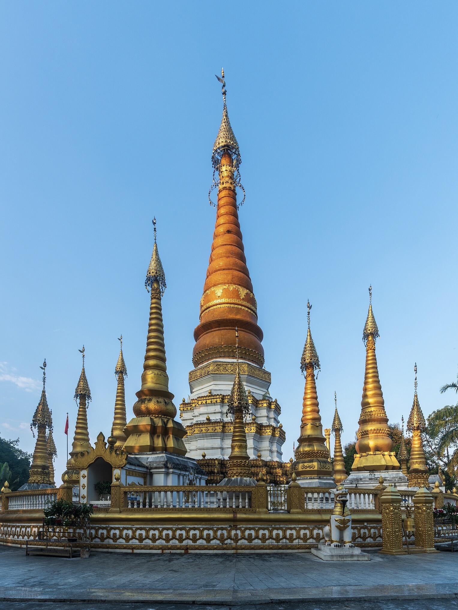 勐煥大金塔&銀塔:南亞風(fēng)佛塔,俯瞰孔雀湖,日落絕美。