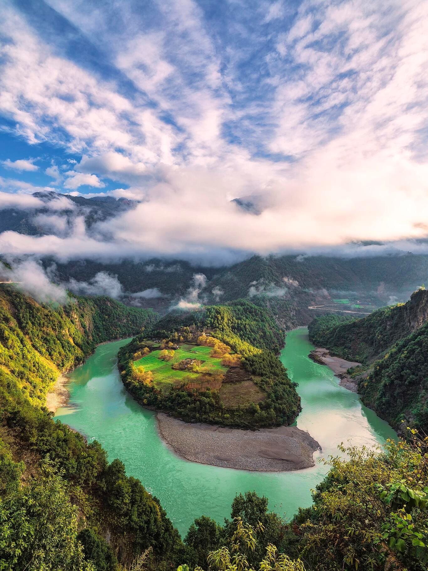怒江第一灣、霧里村:江水轉(zhuǎn)彎如月,村莊石板為頂,美得像仙境。